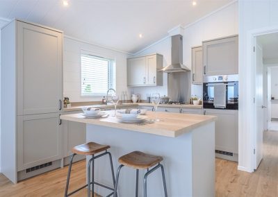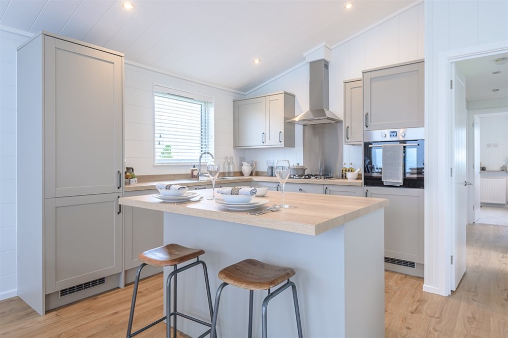 The large fully equipped kitchen comes complete with a generous island breakfast bar – just right for social settings.